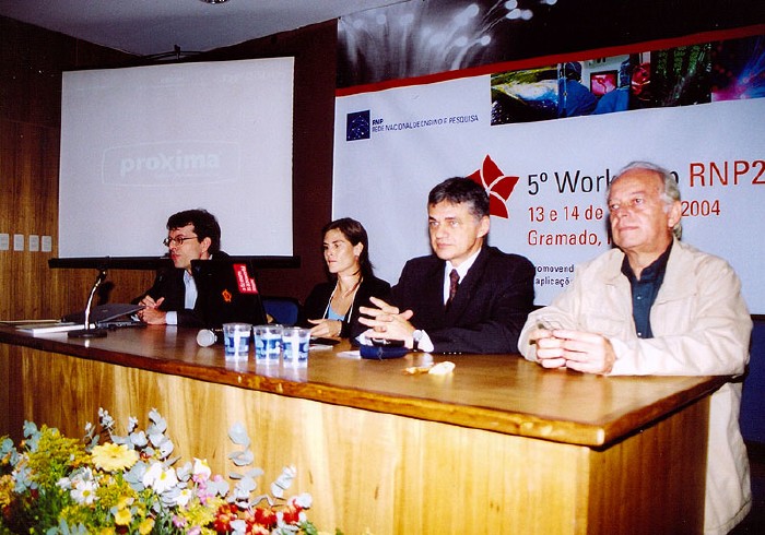 Nelson Simões (RNP), Ana Preston (Internet2), Marcos Dantas (MEC) e Arthur Pereira Nunes (MCT)